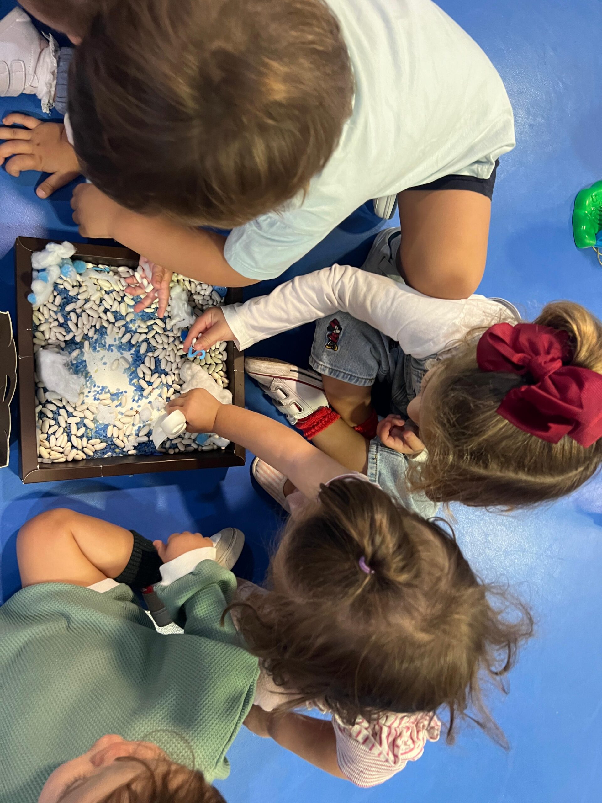 3. Promovemos el aprendizaje sensorial con nuestra gran variedad de bandejas sensoriales, talleres multisensoriales ( luz negra, pintura fluorescente, mesas de luz…). Gracias a estos talleres tocan, experimentan con los sentidos y exploran libremente lo que les permite mejorar su capacidad de concentración y percepción y conocer mejor su entorno a través del placer preparándoles para su futura lógica matemática!